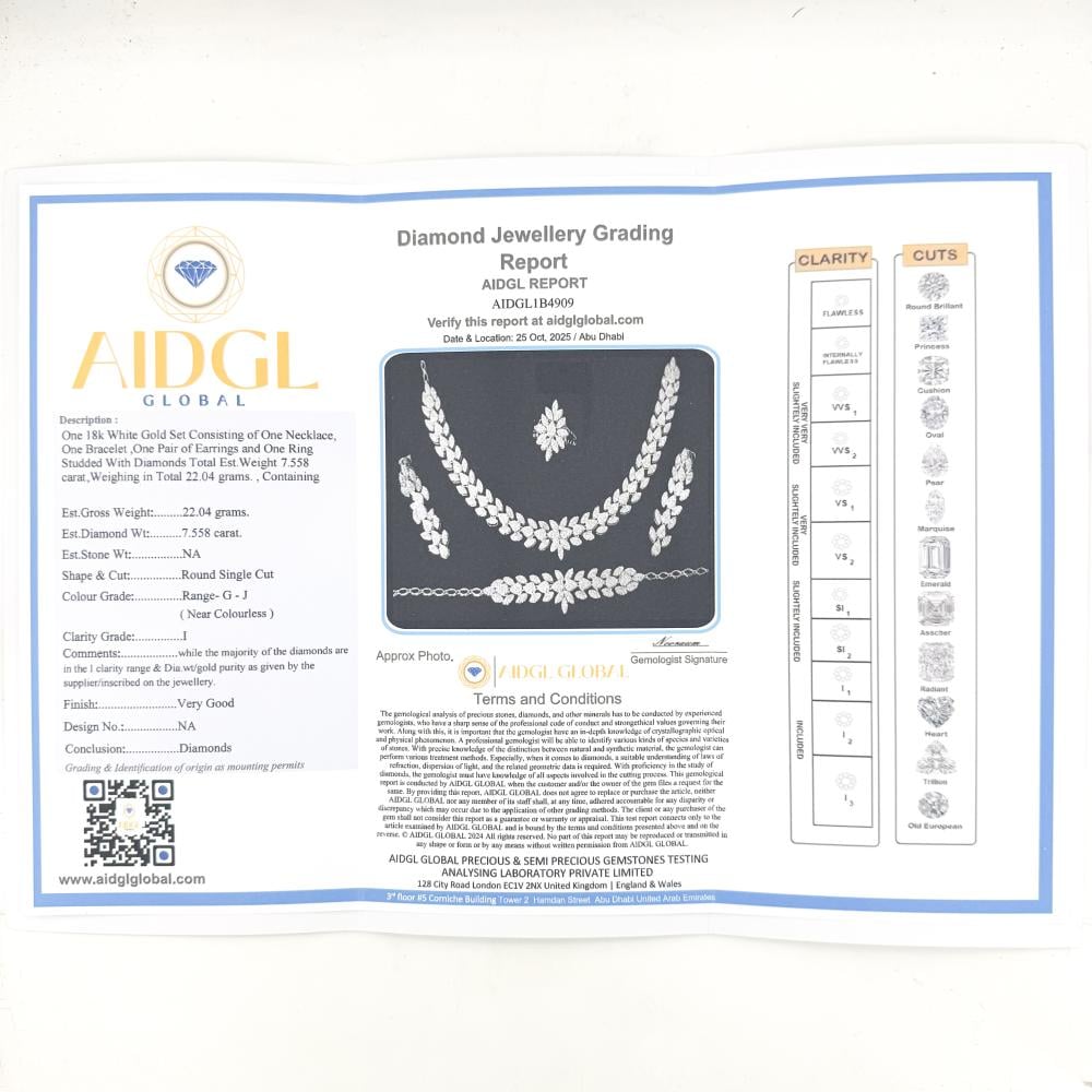 - مرفق مع شهادة موثقة توضّح تفاصيل الألماس (اللون – النقاء – الوزن).